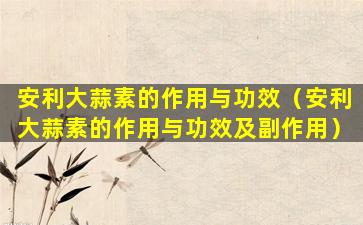 安利大蒜素是一种以大蒜为主要成分的保健品,它含有大蒜中的活性成分,如大蒜素、硫化物等。大蒜素具有多种生物活性,对人体健康有多方面的益处。以下是安利大蒜素的一些作用与功效: