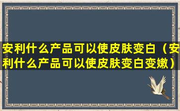 安利(Amway)是一家全球性的直销公司,提供多种健康、美容和个人护理产品。关于皮肤美白和嫩肤,安利有几款产品可能会对您有所帮助,但请注意,每个人的皮肤类型和反应都是不同的,所以在使用任何产品之前,最好先进行皮肤测试,并咨询皮肤科医生的建议。