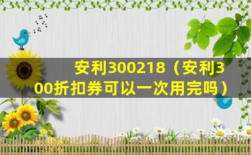 安利(Amway)是一家全球知名的直销公司,提供各种健康、美容和个人护理产品。关于您提到的“300折扣券”,这可能是指安利公司提供的一种促销活动,即消费者在购买产品时可以使用一定金额的折扣券来减少支付的金额。