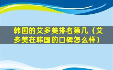 在韩国国内,艾多美通常被认为是化妆品行业的领导者之一,但具体的排名可能会根据不同的评价标准和时间点而有所变化。例如,根据市值、销售额、品牌影响力等因素,艾多美可能在不同的排名中位于不同的位置。