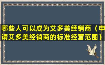 在中国,根据《中华人民共和国反不正当竞争法》和《中华人民共和国直销管理条例》等相关法律法规,成为直销企业(如艾多美)的经销商需要满足一定的条件。以下是一般情况下,可以成为艾多美经销商的人群: