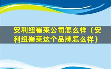 关于安利纽崔莱公司的评价,可以从以下几个方面来考虑: