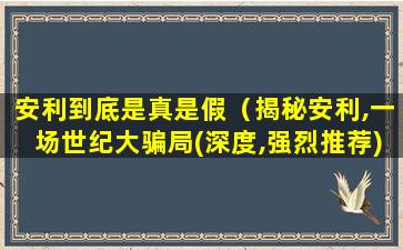 关于“揭秘安利,一场世纪大骗局”的说法,首先需要明确的是,安利(Amway)是一家全球知名的直销公司,成立于1959年,总部位于美国密歇根州。安利主要通过直销模式销售个人护理、家居护理、营养补充品等产品。