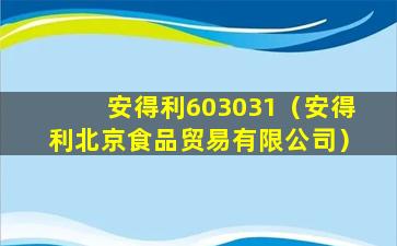 您提到的“安得利603031”似乎是指一个股票代码,但是在中国A股市场中,并没有这个代码。可能是因为输入错误或者是其他市场的股票代码。如果您是在寻找某个具体的股票信息,请提供正确的股票代码或者股票名称,以便我能够提供准确的信息。