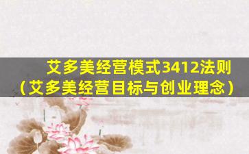 艾多美(Atomy)是一家韩国的直销公司,以销售化妆品、健康食品等产品为主。关于“艾多美经营模式3412法则”,这个表述并不是一个广为人知的标准术语,可能是某个团队或个人为了指导销售和团队建设而提出的一个概念。由于这个表述不是一个官方或广泛认可的术语,我无法提供一个确切的定义或解释。