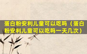 安利(Amway)是一家全球知名的直销公司,其产品包括营养补充品,如蛋白粉。关于儿童是否可以食用安利蛋白粉以及食用频率,以下是一些一般性的建议: