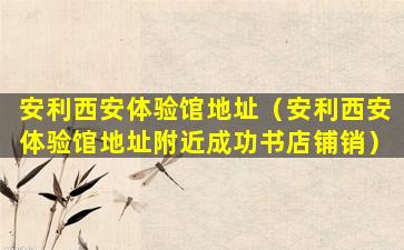 安利(Amway)是一家全球知名的直销公司,提供各种健康、美容和个人护理产品。如果您在寻找安利西安体验馆附近的书店,您可能需要使用地图服务或搜索引擎来查找具体的位置。
