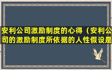 安利公司的激励制度基于对人性积极面的假设,即人们有追求个人成长和社交满足的内在动力,通过提供相应的支持和激励,可以激发员工的潜力,促进公司的发展。