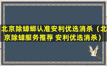 您提到的“北京除蟑螂认准安利优选消杀”可能是指在北京地区提供蟑螂等害虫消杀服务的公司或品牌。需要注意的是,“安利”通常是指一家国际知名的直销公司,主要销售健康、美容和家居产品,而不是专业的消杀服务。因此,如果您在北京寻找专业的蟑螂消杀服务,建议您查找当地信誉良好的专业消杀公司,并确保他们拥有合法的营业执照和相关的资质证书。