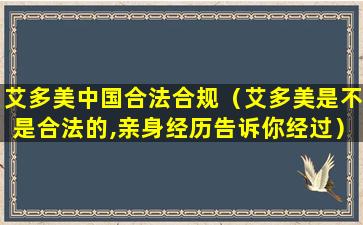 如果您对艾多美中国的合法性有疑问,可以通过查询中国商务部直销行业管理信息系统来确认其直销许可证的有效性,或者咨询相关法律专业人士。同时,消费者在购买艾多美产品时,也应确保通过正规渠道,以保障自己的合法权益。