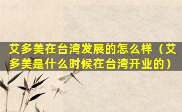 艾多美在台湾发展的怎么样(艾多美是什么时候在台湾开业的)