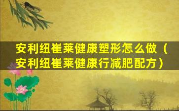 安利纽崔莱健康塑形怎么做(安利纽崔莱健康行减肥配方)