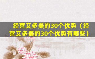 艾多美(Amway)是一家全球知名的直销公司,提供多种健康、美容和个人护理产品。经营艾多美可能会有以下30个优势: