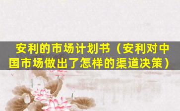安利(Amway)是一家全球性的直销公司,其产品包括健康、美容和个人护理产品。安利在中国市场的渠道决策主要体现在以下几个方面: