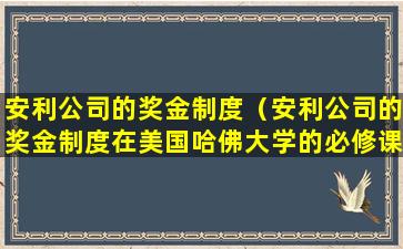 安利公司是一家全球知名的直销公司,其奖金制度是公司运营的一部分,但将其作为哈佛大学必修课的内容,需要有充分的学术依据和教育价值。在没有官方信息或权威学术出版物支持的情况下,这一说法应持谨慎态度。