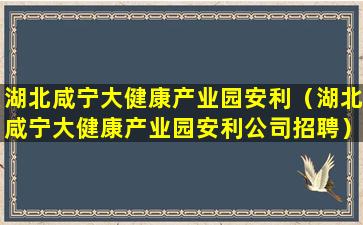 关于“湖北咸宁大健康产业园安利”的具体信息,目前没有官方的详细资料公布。如果您是指安利公司(Amway)在湖北咸宁的大健康产业园项目,建议您直接咨询安利公司或查看其官方网站以获取最准确的信息。