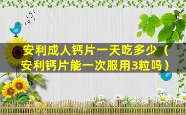 安利(Amway)是一家国际知名的直销公司,其产品线包括营养补充品。安利成人钙片的具体服用量应该根据产品说明书或医生的建议来确定。