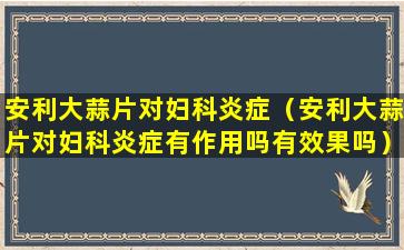 虽然大蒜因其天然的抗菌和抗炎特性而被认为可能对某些健康问题有益,但是并没有充分的科学证据表明安利大蒜片或其他大蒜补充剂可以直接治疗妇科炎症。治疗妇科炎症通常需要针对性的医疗干预,包括使用抗生素、抗真菌药物或其他处方药物,以及遵循医生的建议进行治疗。