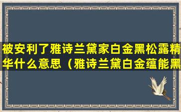 “被安利了雅诗兰黛家白金黑松露精华”意味着有人向你推荐了雅诗兰黛(Estée Lauder)品牌的白金系列中的黑松露精华产品。这通常意味着推荐者认为这款产品非常好,可能基于其成分、效果、品牌声誉或其他个人使用体验。