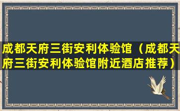 成都天府三街并没有官方的安利体验馆。安利(Amway)是一家全球知名的直销公司,主要销售健康、美容和家居护理产品。在中国,安利设有多个体验中心,但具体位置和分布可能会随时间而变化。