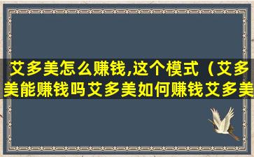 艾多美怎么赚钱,这个模式(艾多美能赚钱吗艾多美如何赚钱艾多美赚钱容易吗)