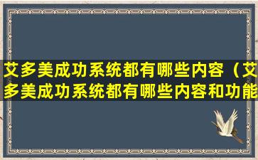 关于“艾多美成功系统”的内容和功能,目前没有官方的详细信息。如果您是指某个特定的商业系统或培训课程,建议您直接咨询该系统的官方渠道或授权代表,以获取最准确和官方的信息。