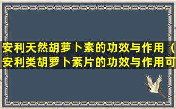 安利类胡萝卜素片是一种膳食补充剂,主要成分是类胡萝卜素,它是一种强大的抗氧化剂,对人体有多方面的益处。以下是类胡萝卜素的一些主要功效与作用: