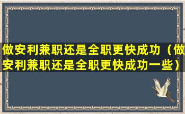 关于“做安利兼职还是全职更快成功”的问题,这取决于个人的时间管理能力、销售技巧、市场情况以及个人对成功的定义。兼职可能适合那些希望在保持现有工作的同时尝试直销的人,而全职则可能适合那些愿意全身心投入并追求直销事业的人。