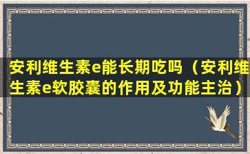 安利(Amway)是一家国际知名的直销公司,其产品包括维生素E等营养补充品。关于维生素E的长期食用,以下是一些一般性的建议: