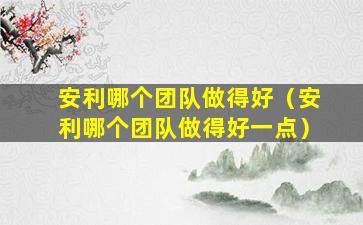 安利(Amway)是一家全球知名的直销公司,其产品涵盖健康、美容、家居护理等多个领域。由于安利在全球范围内有众多的独立经销商,因此很难一概而论哪个团队做得最好,因为这取决于多种因素,包括团队领导的能力、团队文化、市场策略、培训和支持系统等。