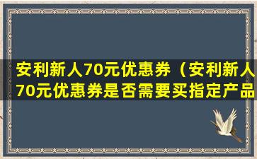 如果安利推出了新人70元优惠券的活动,通常会在活动规则中明确指出优惠券的使用条件,包括是否需要购买指定产品、优惠券的有效期限、使用范围等信息。因此,如果您手中有这样的优惠券,建议您仔细阅读优惠券上的使用说明或咨询安利的官方客服,以获取最准确的信息。