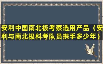 截至我的知识更新日期(2023年),没有确切的信息表明“安利”(Amway)与南北极科考队员有长期的合作关系。安利是一家美国的直销公司,主要销售健康、美容和家居护理产品。它可能会通过赞助或其他方式支持科学研究或探险活动,但具体与南北极科考队员的合作情况需要查阅最新的资料或官方声明来确认。