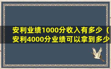 关于“业绩1000分”的收入,这个数字并不能直接转换为具体的收入金额,因为安利的奖金制度比较复杂,涉及到多个层级和不同的奖金类型。安利的奖金制度在不同国家和地区可能有所不同,因此具体的收入计算需要参考当地的奖金计划。