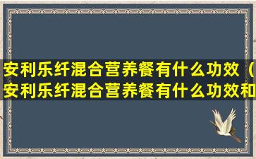 1. 提供均衡营养:安利乐纤混合营养餐含有多种维生素、矿物质和膳食纤维,有助于补充日常饮食中可能缺乏的营养素。
