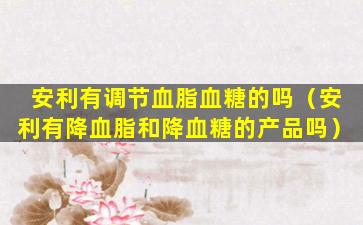 安利(Amway)是一家国际性的直销公司,其产品线涵盖了营养补充品、个人护理品、家居清洁用品等多个领域。在营养补充品方面,安利确实提供了一些声称能够帮助调节血脂和血糖的产品。