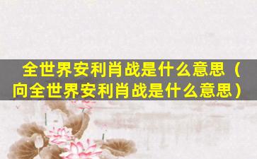 “向全世界安利肖战”这个表达是一种网络用语,其中“安利”是网络流行语,源自英文单词“recommend”的谐音,意为推荐或介绍。在这个语境中,“向全世界安利肖战”意味着向全世界推荐或介绍肖战,表达了对肖战的喜爱和支持,希望更多的人了解和喜欢他。