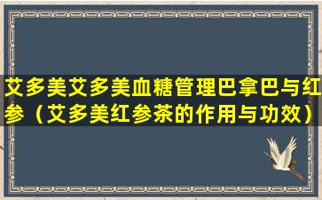 关于“艾多美血糖管理巴拿巴与红参”,这可能是指艾多美推出的一种结合了巴拿巴(Banaba)和红参(Korean Red Ginseng)成分的产品,旨在帮助管理血糖水平。巴拿巴是一种在菲律宾常见的植物,其叶子含有一种名为罗丹明的化合物,据称可以帮助调节血糖。红参则是一种被广泛认为具有多种健康益处的草药,包括提高能量和免疫力。