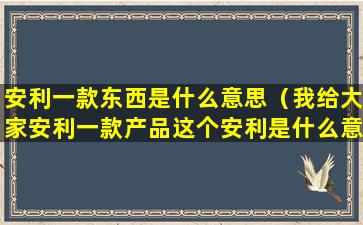 "安利一款东西"这个表达源自中国的网络用语,"安利"一词在这里是动词,源自英文单词"Amway"(安利公司,一家美国的直销公司),在中国网络语境中被借用来表示推荐或介绍某样东西给他人。所以,“安利一款东西”就是指推荐或介绍一款产品、服务、应用、书籍、电影等给其他人。