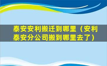 如果您询问的是安利在泰安市的分公司搬迁情况,由于我无法提供实时更新的信息,建议您直接联系安利公司或访问其官方网站以获取最新的地址和联系方式。通常,公司搬迁会在其官方渠道上发布通知,包括新的办公地点和联系方式。