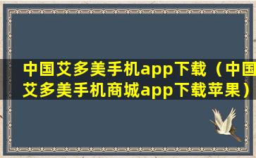 中国艾多美手机app下载(中国艾多美手机商城app下载苹果)