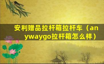 如果您提到的“安利赠品拉杆箱拉杆车”是指安利公司提供的赠品,那么这可能是作为促销活动的一部分,以吸引顾客购买其产品。通常,这类赠品会与购买一定金额的产品或参与特定的促销活动相关联。