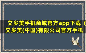 截至我的知识更新日期(2023年),艾多美(中国)有限公司是一家在中国运营的公司,可能涉及健康、美容或其他相关产品。如果您正在寻找艾多美(中国)有限公司的官方手机应用程序,建议您直接访问艾多美的官方网站或通过正规的应用商店(如苹果App Store或Google Play商店)搜索该公司的官方应用程序。