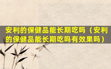 安利(Amway)是一家全球知名的直销公司,其产品线包括多种保健品。关于安利的保健品是否能长期吃以及是否有效果,以下是一些需要考虑的因素:
