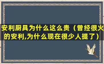 安利(Amway)是一家全球知名的直销公司,其产品线涵盖了健康、美容、家居护理等多个领域。安利厨具之所以价格较高,可能有以下几个原因: