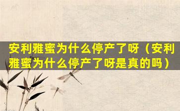 如果您需要了解“安利雅蜜”停产的具体原因,建议直接联系安利公司或查看其官方公告以获取最准确的信息。