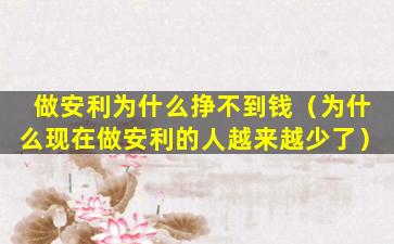 关于“做安利为什么挣不到钱”的问题,这里需要澄清几个点: