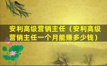 安利(Amway)是一家全球性的直销公司,其营销人员的收入主要取决于他们的销售业绩和团队发展情况。高级营销主任(Senior Marketing Director)是安利营销体系中的一个较高级别,通常意味着该营销人员已经建立了一定规模的团队,并且有稳定的销售业绩。