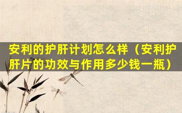 安利(Amway)是一家全球知名的直销公司,提供多种健康、美容和家居产品。关于“安利的护肝计划”,这可能是指安利公司推出的旨在支持肝脏健康的产品或一系列产品组合。