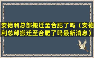 截至我的知识更新日期(2023年),关于安德利总部是否搬迁至合肥的具体信息并不明确。安德利集团是一家在中国有较大影响力的企业,涉及多个行业领域。如果安德利集团有总部搬迁的计划或已经实施,这样的消息通常会通过官方渠道或新闻媒体进行公布。