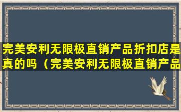 关于“完美安利无限极直销产品折扣店”是否真实,我无法提供确切的信息,因为这取决于具体的店铺和其运营情况。无限极是一家知名的直销公司,其产品通过直销模式销售。如果您在网上或社交媒体上看到声称是无限极产品的折扣店,建议您谨慎对待,并采取以下措施: